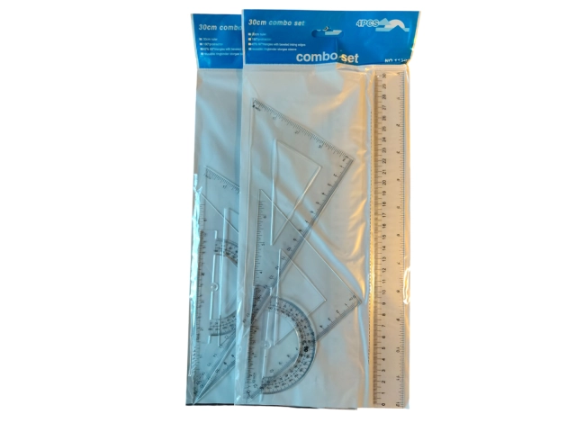JUEGO DE GEOMETRÍA REGLA DE 30CM ACRÍLICO